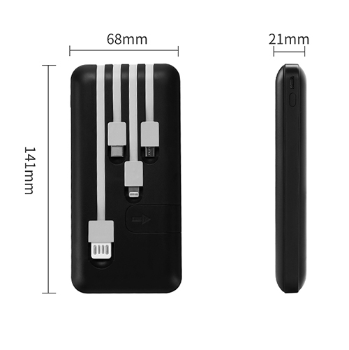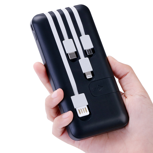 BMP-J1768:Mobile Phone Stand Power Bank with four cables(USB/Type C/iPhone/Micro tips)10000mAh