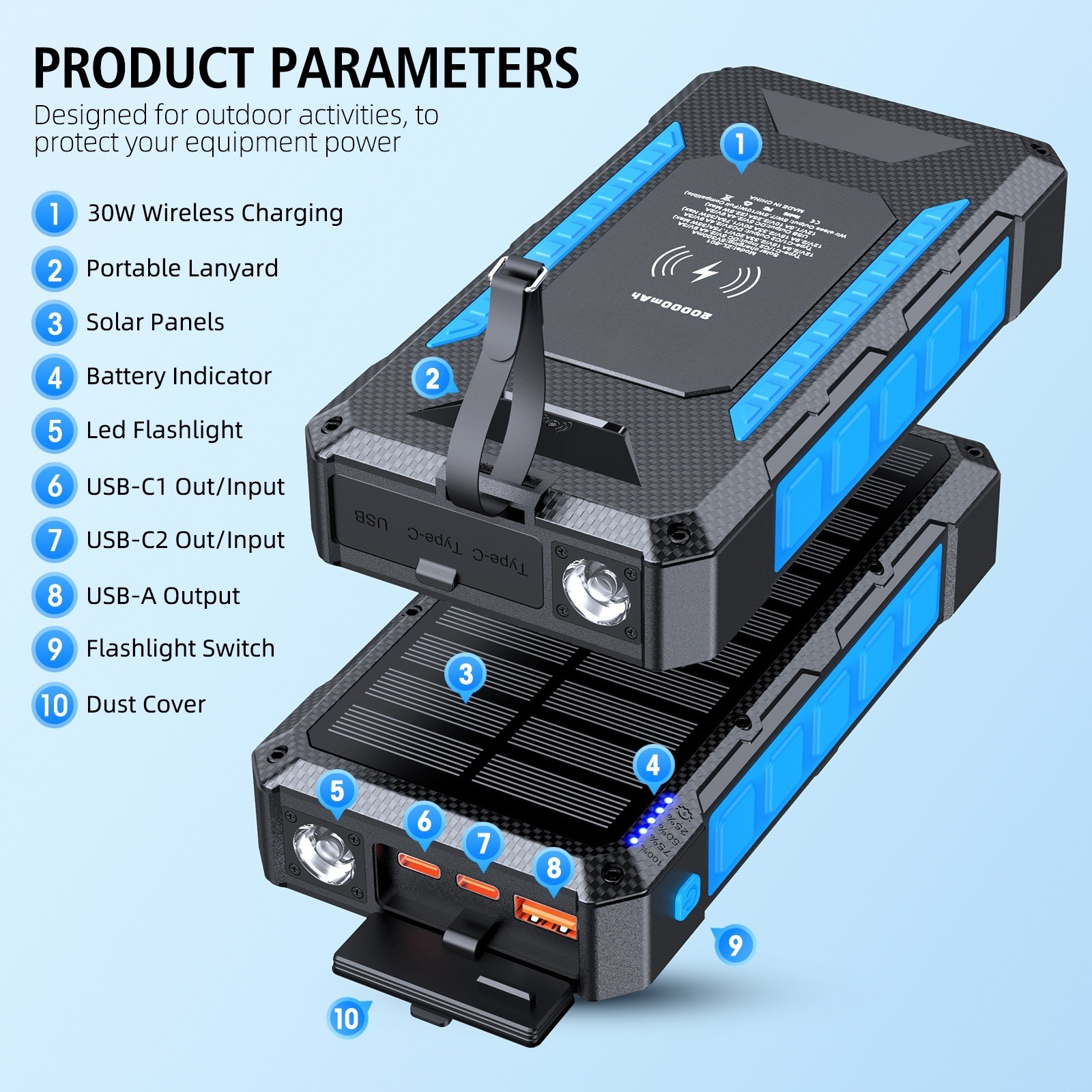 BMP-W2033 Solar Power Bank 20000mAh with Wireless Charger