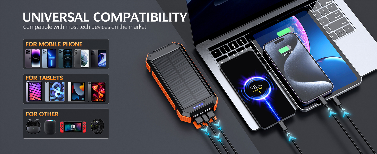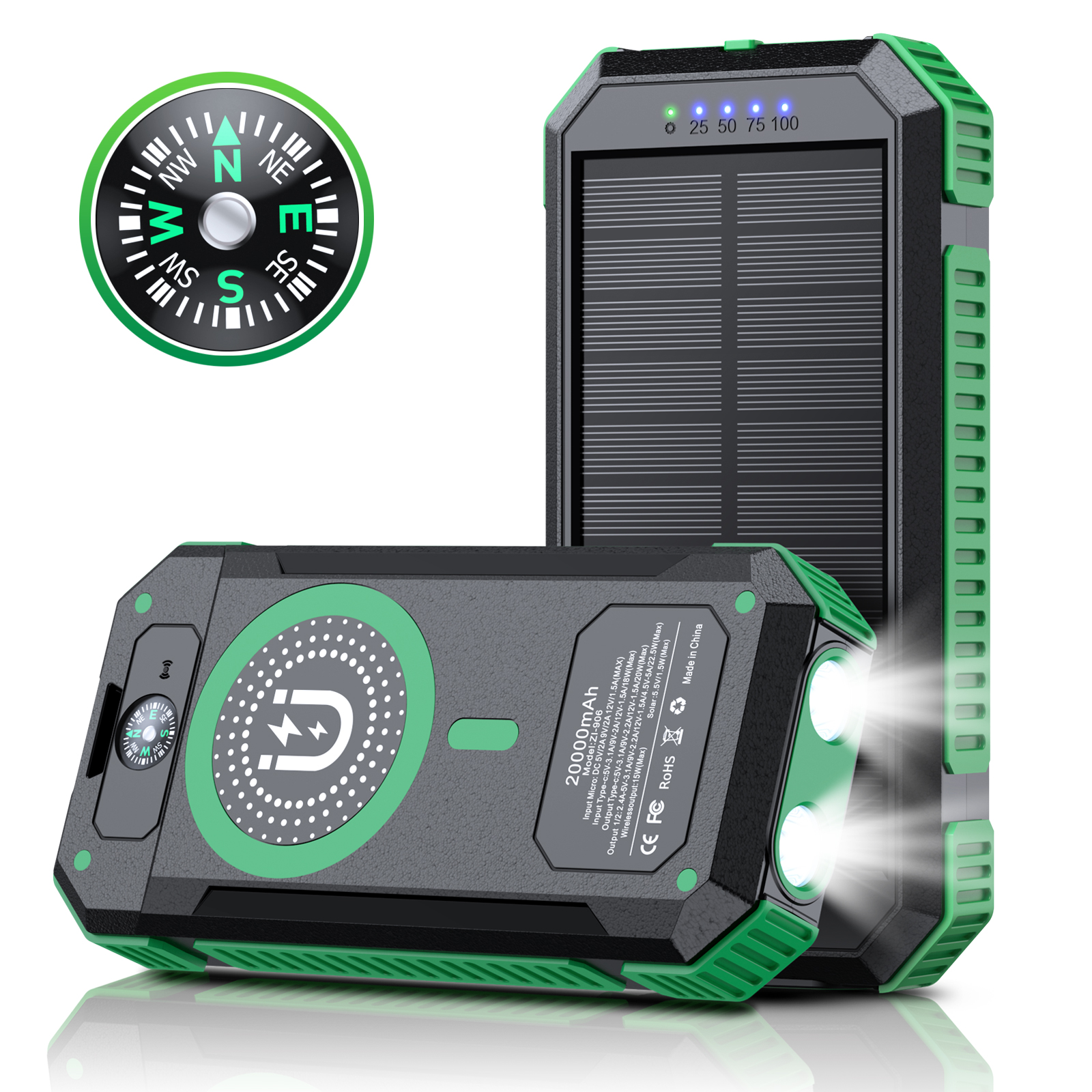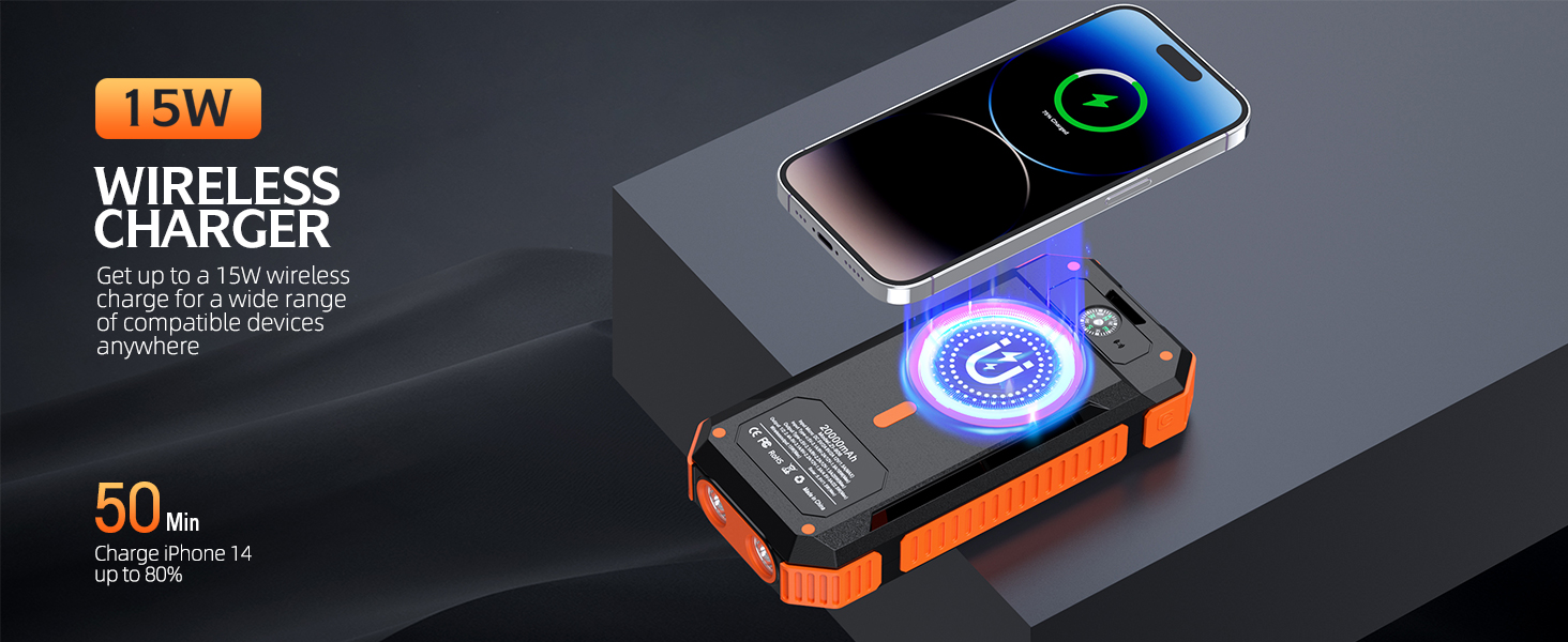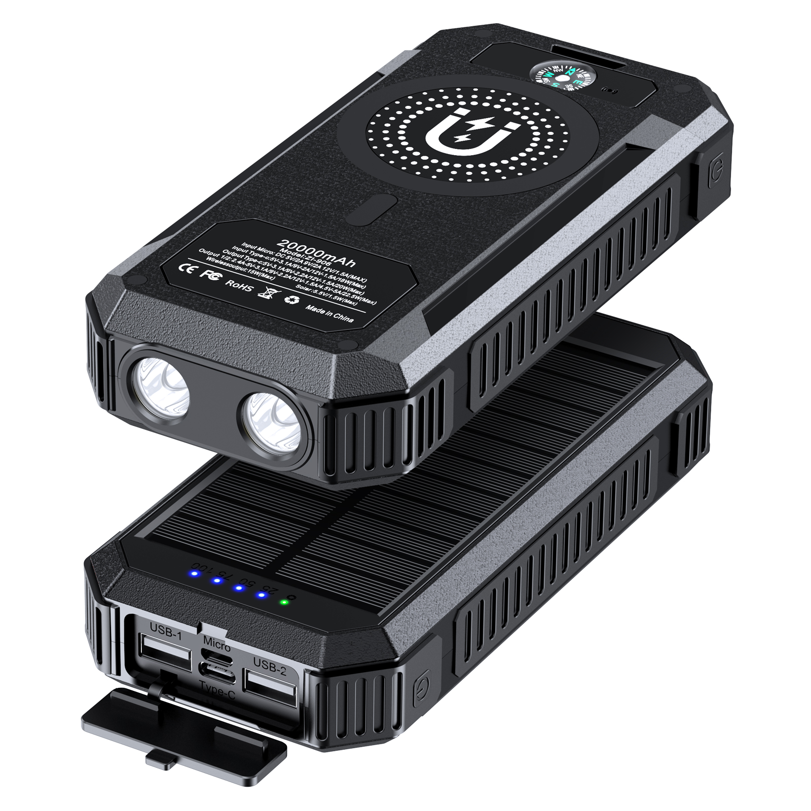 BMP-W2034C 22.5W Fast Charging Solar Power Bank 20000mAh with Wireless Charger 15W